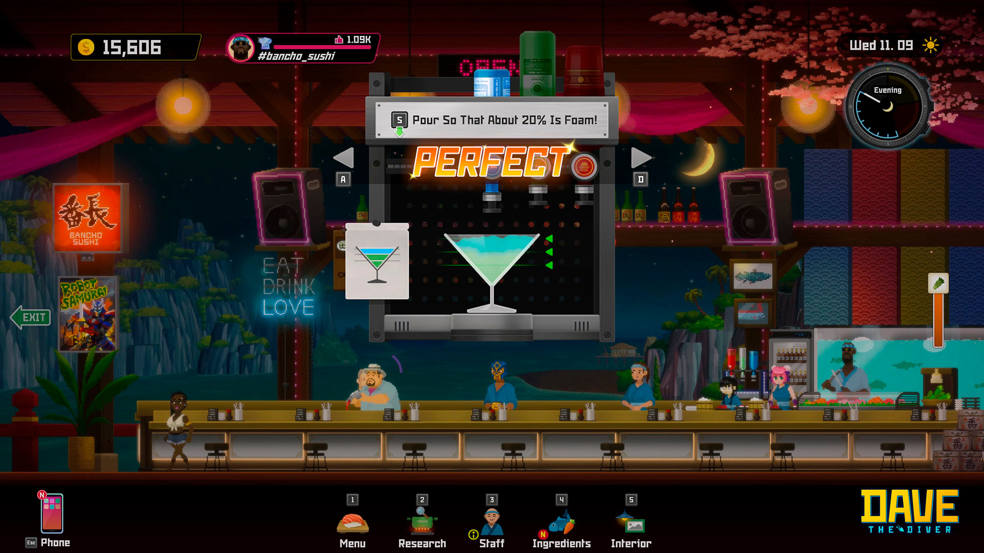 DAVE THE DIVER is a casual, single-player adventure RPG featuring deep-sea exploration and fishing during the day and sushi restaurant management at night. Join Dave and his quirky friends as they seek to uncover the secrets of the mysterious Blue Hole.