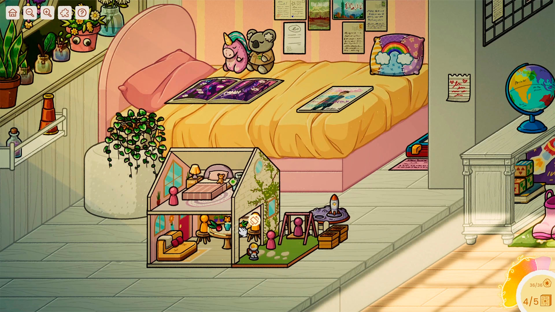 Click your way through a delightfully tactile world, switching on lights, leafing through books, petting adorable animals, and more! Collect items and furniture in story mode to play with in the endless creative mode. At the end of it all you return to the very beginning, to discover new endings, fresh twists in the path, and explore an evolving story of love and loss.