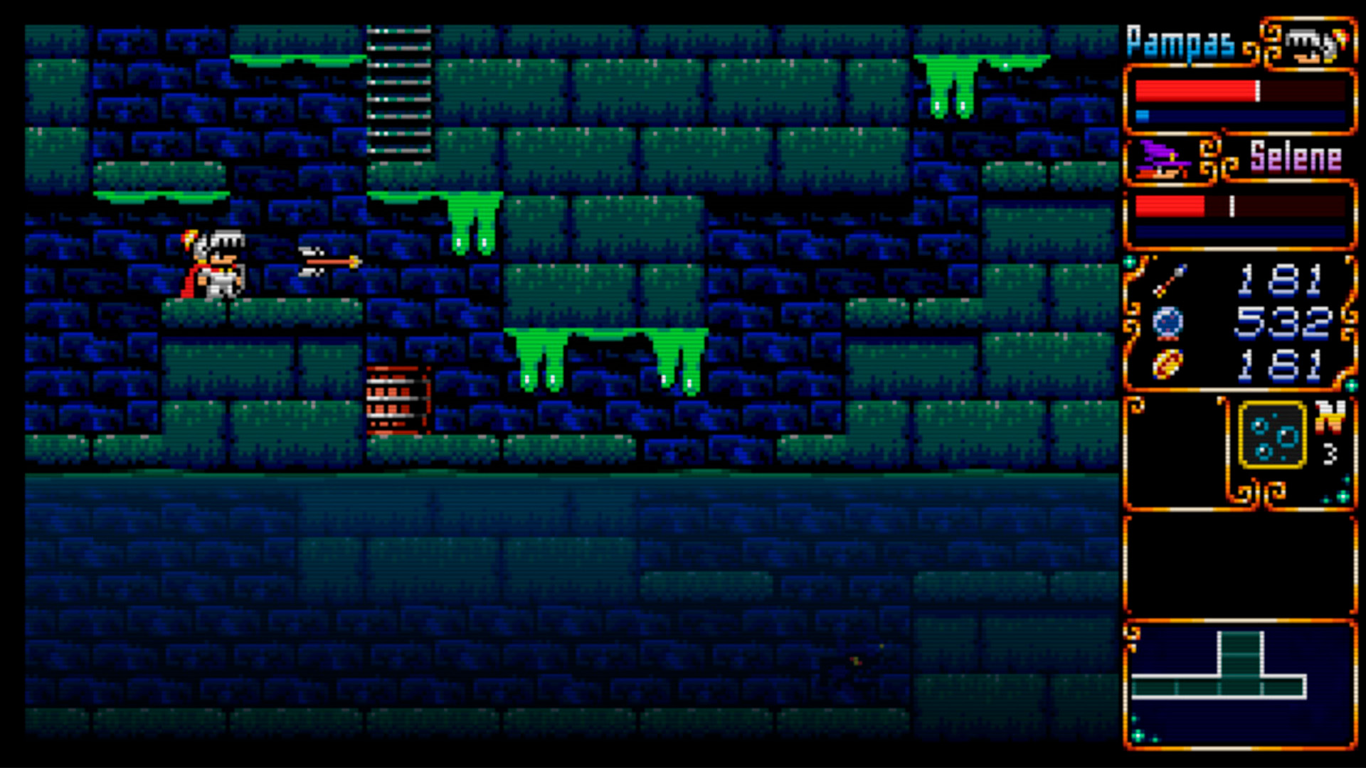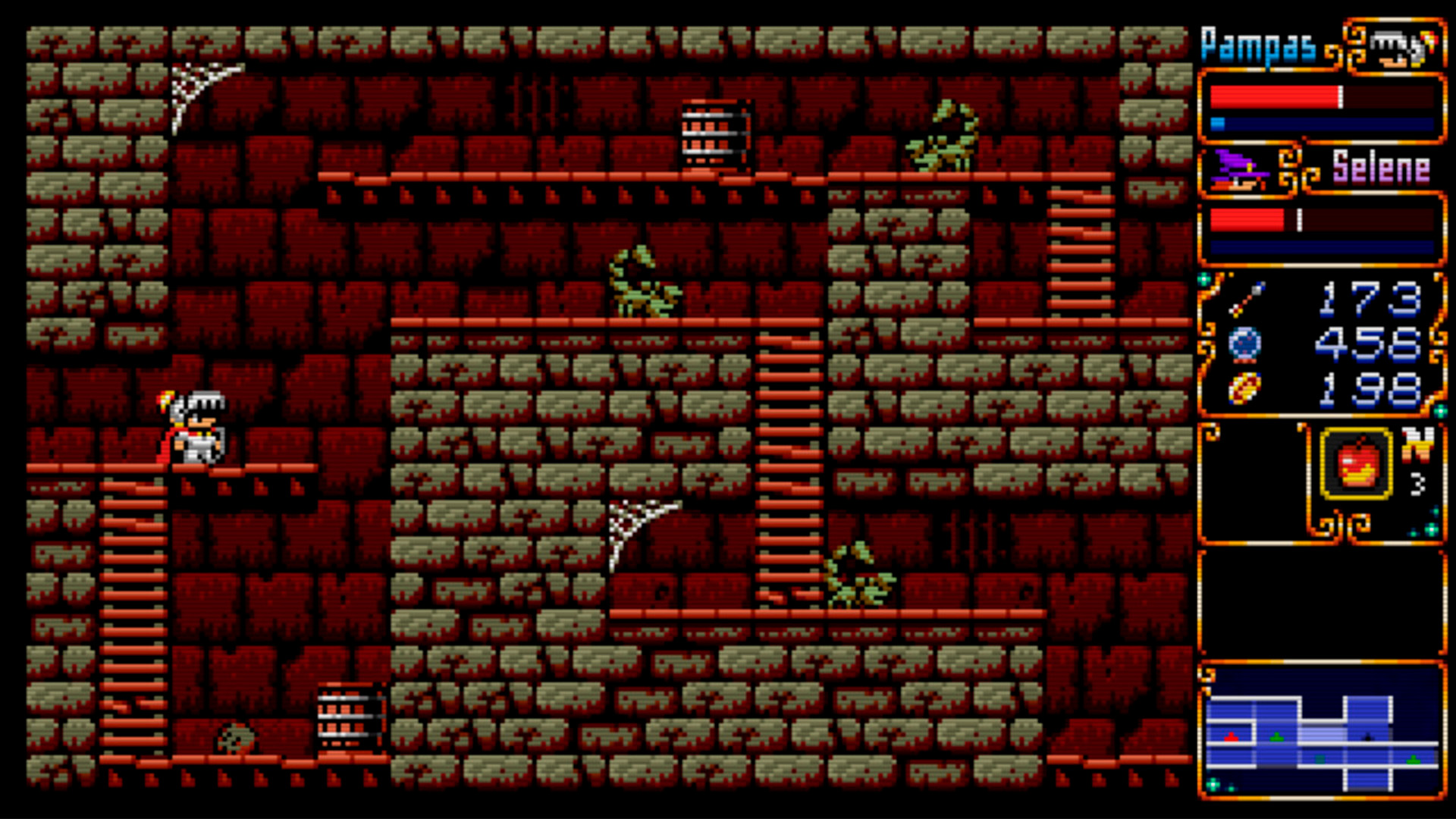In years past, the Dark Priest invaded the kingdom of Greek. Two brave heroes entered the cursed Castle Greek and defeated the evil within. Now, nearly 40 years later, a new evil power has arisen, and armies of undead ravage the lands. Pampas and Selene—the children of those heroes’ past—take up their parents’ mantle and enter the ancient, ruined Castle Mogdoss to put an end to this new terrible threat.
